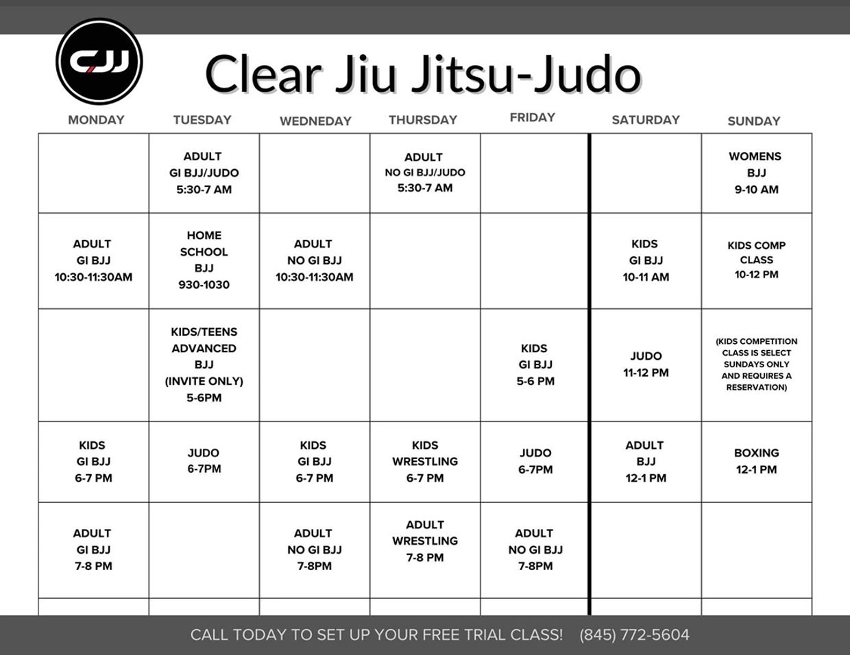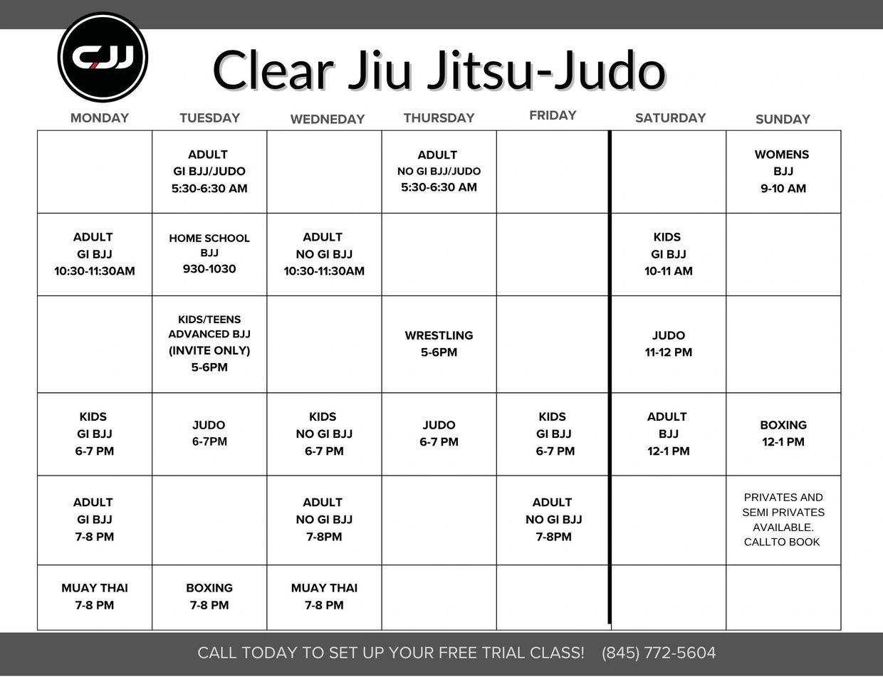 Experience the Clear JiuJitsu difference for yourself by signing up for a free introductory class. No experience is necessary, and all ages are welcome. Our friendly and knowledgeable instructors will guide you through the basics and help you feel comfortable and confident on the mat.